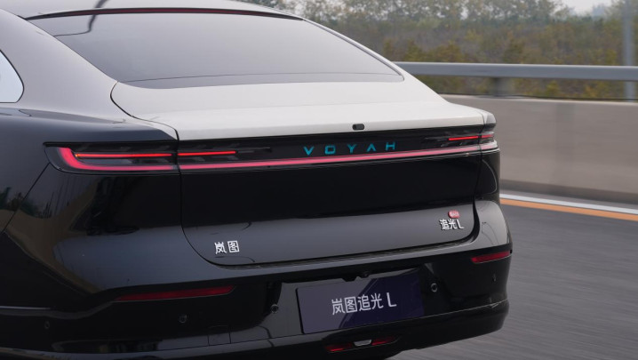 从后门处开始隆起的肩线和溜背的造型,让整个车尾显得更加饱满、立体。贯穿式的尾灯和可发光的VOYAH车标科技感十足。此外,追光L的后备厢开启按钮设置在后备厢盖的上沿,操作起来不用弯腰,更方便。