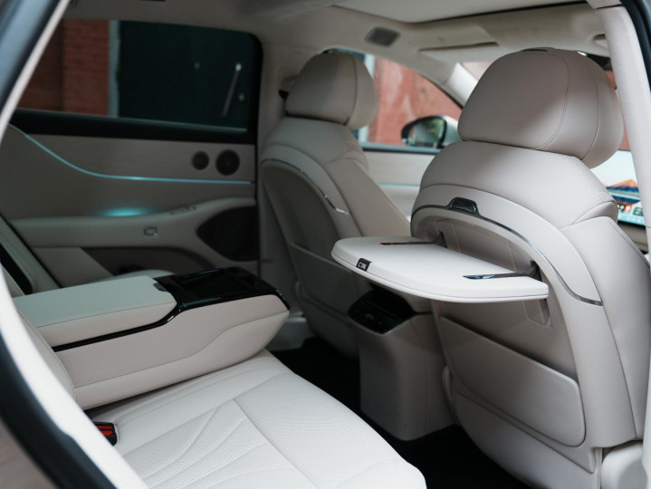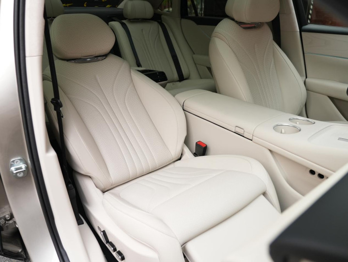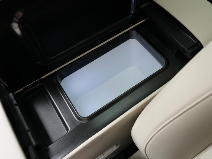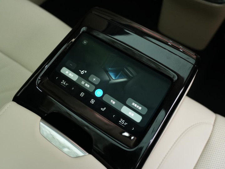 后排配备小桌板,中央扶手配备8英寸的控制屏幕,可对空调,座椅,歌曲控制进行调节。此外,-6°C至50°C的冷暖箱也可通过扶手屏进行调节。